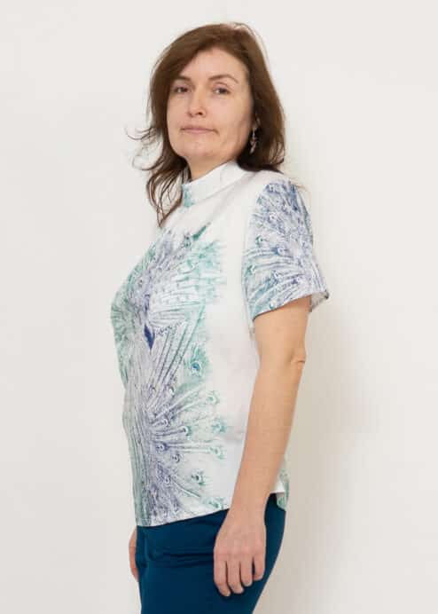 Extravagantes Blusenshirt mit dem neuen Pfauenzauber