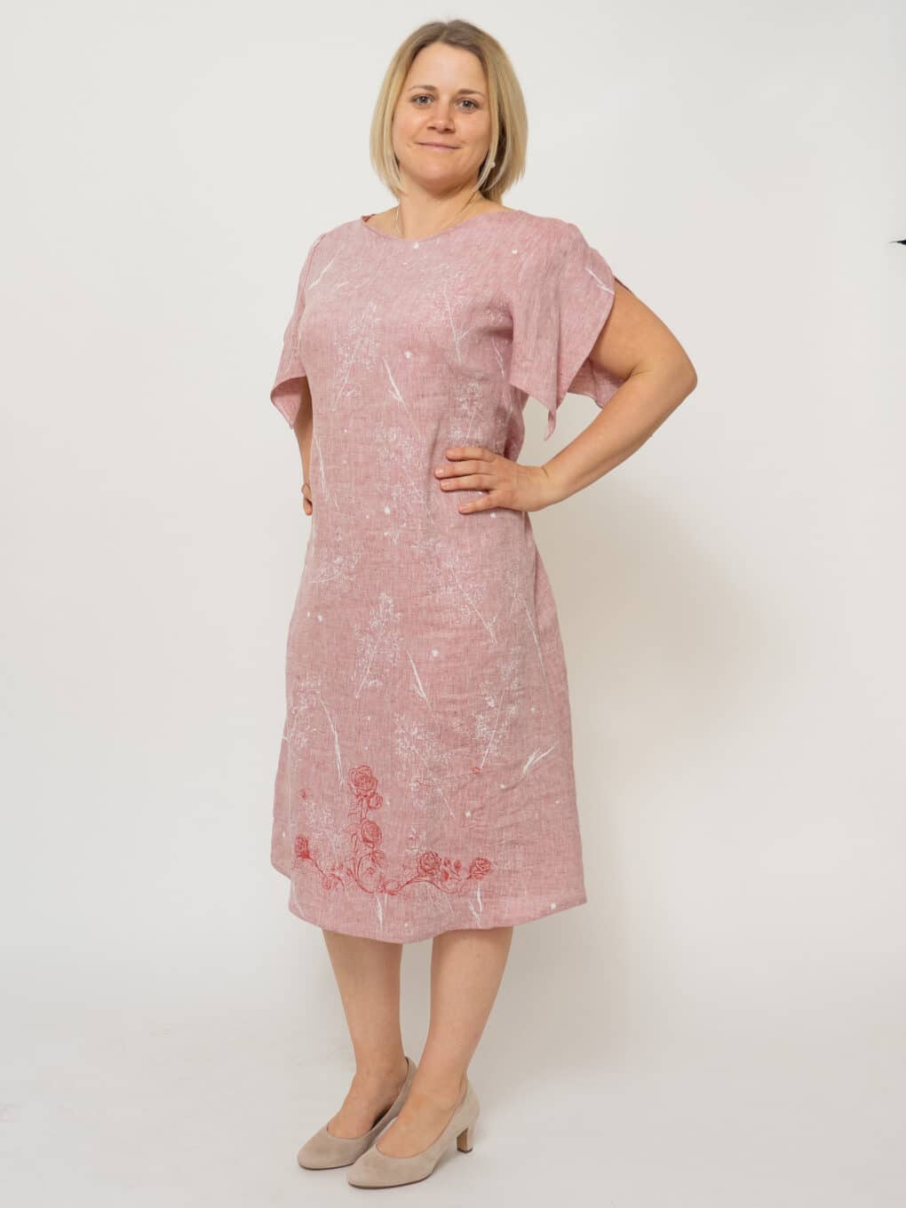 Feines Sommerkleid aus Bioleinen mit zartem Druck.