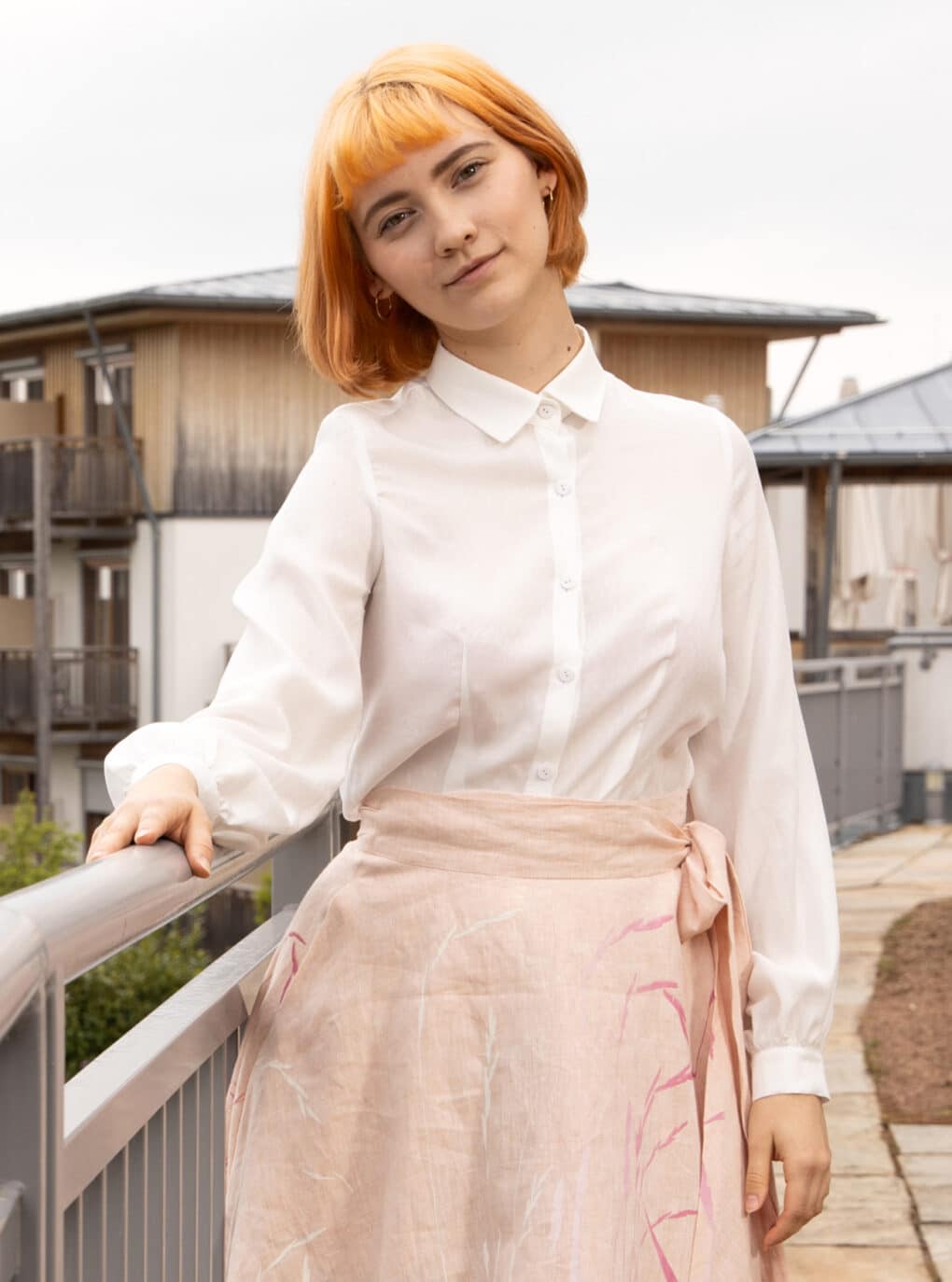 Sollten Sie einen speziellen Größenwunsch haben, oder die Bluse in einer anderen Farbe, mit oder ohne Ärmel, Bändern, etc. wünschen, senden Sie uns bitte einfach eine Nachricht an office@peaces.bio. Wir freuen uns auf Ihre Anfrage.