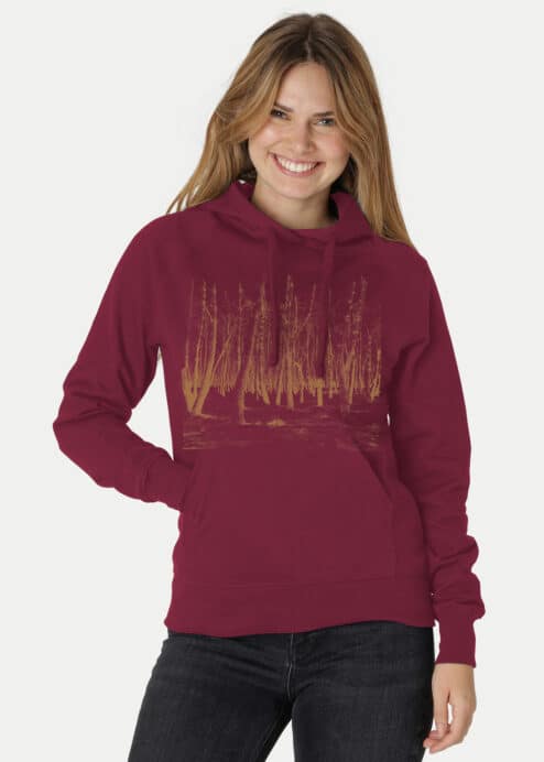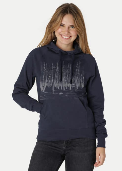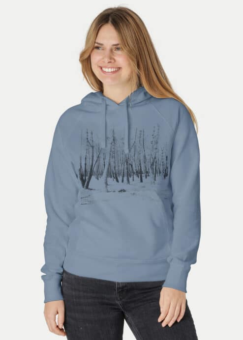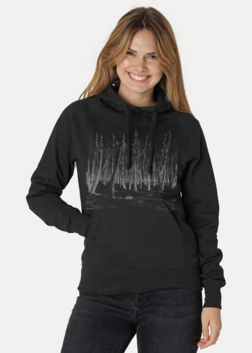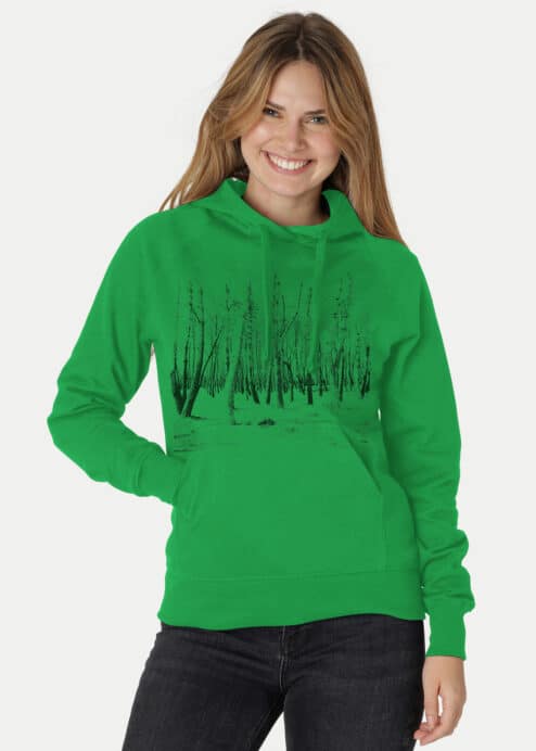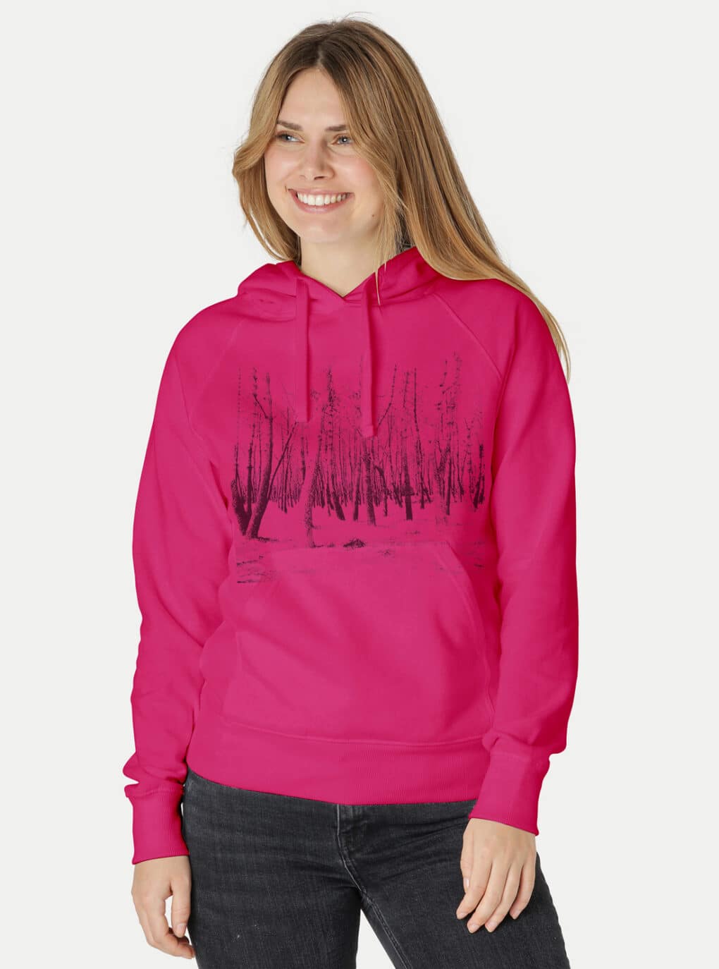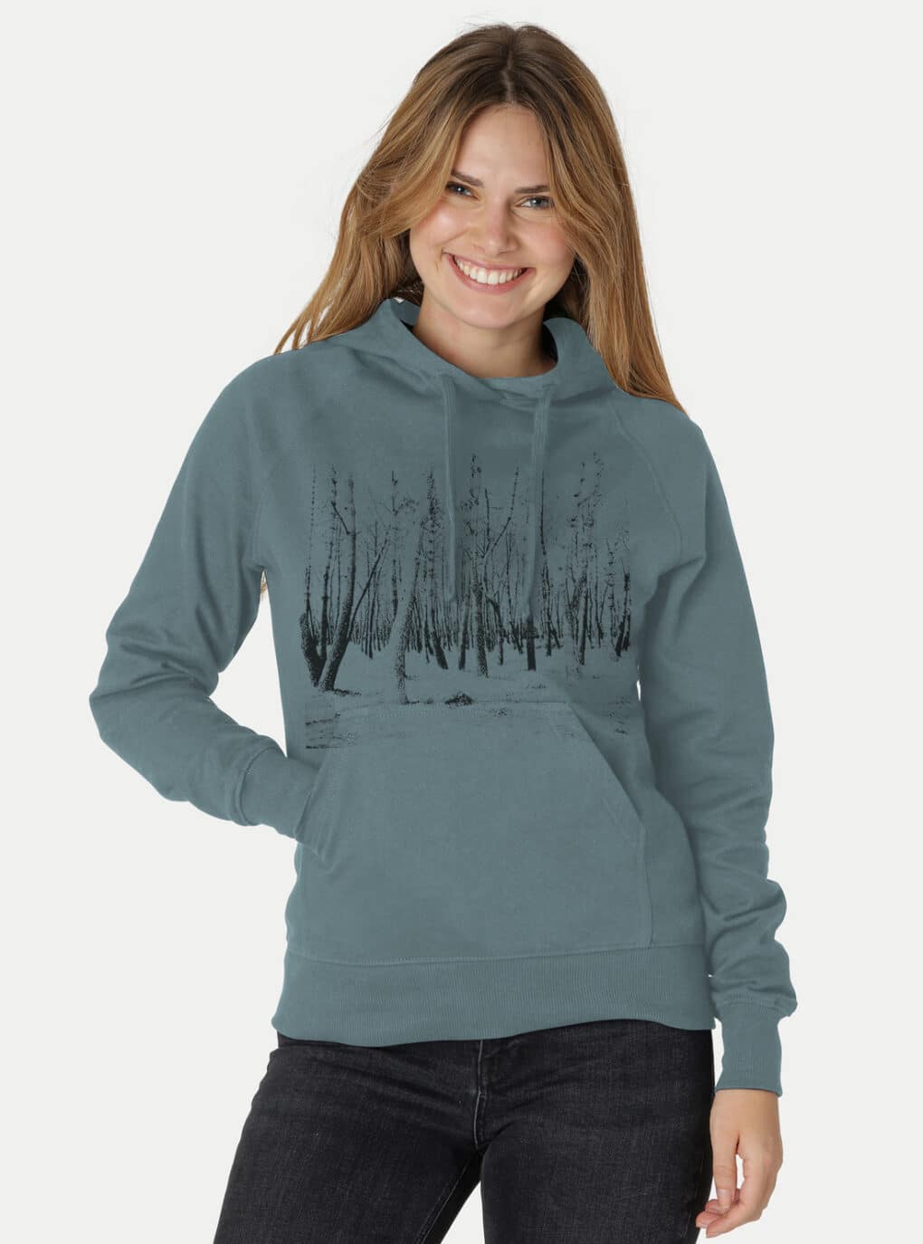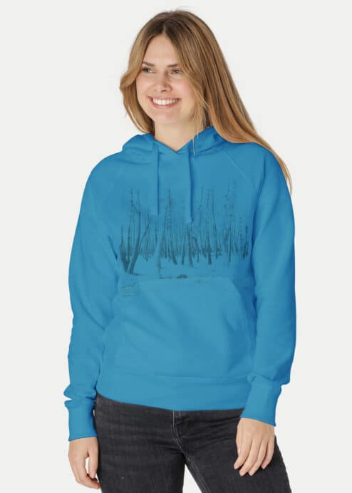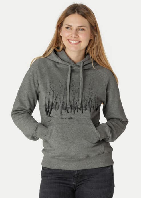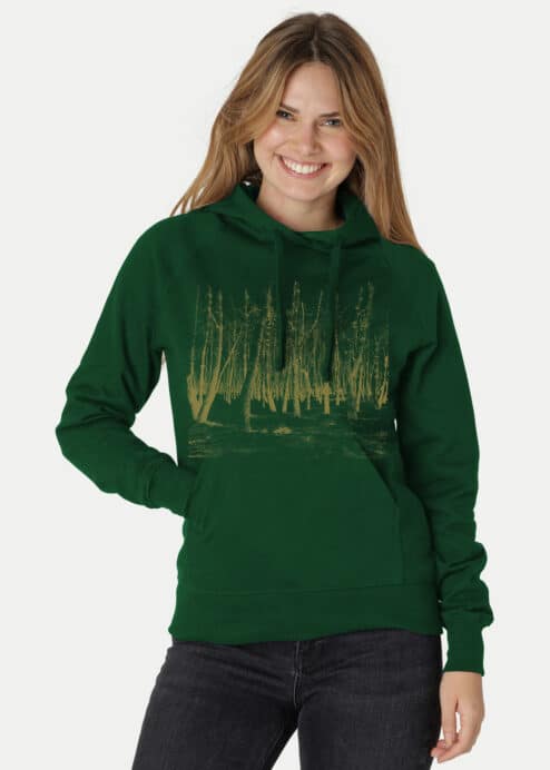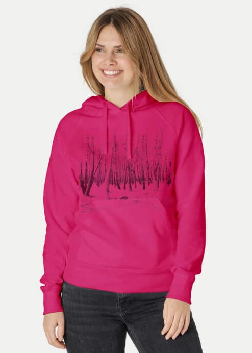 Der Bio Hoodie von Neutral® aus 100% Biobaumwolle ist qualitativ sehr hochwertig und kuschelig weich auf der Haut. Jeder Hoodie wird von Hand von Susanne Huber bedruckt, das Motiv „Woodland“ entstand aus einem Foto, das sie grafisch bearbeitet und auf den Siebrahmen belichtet hat.