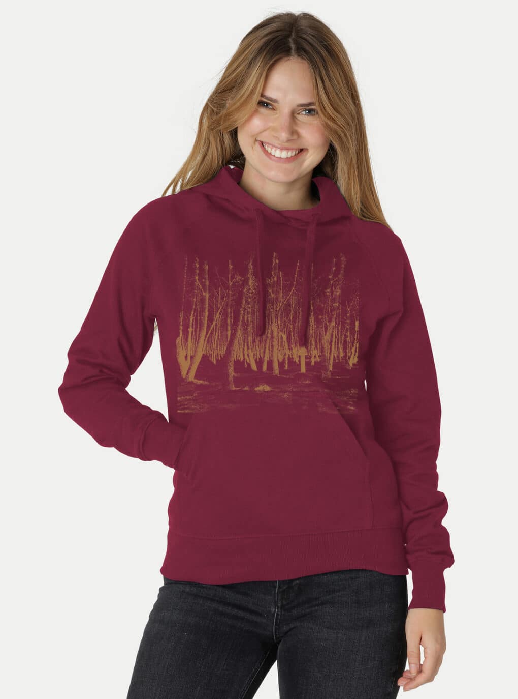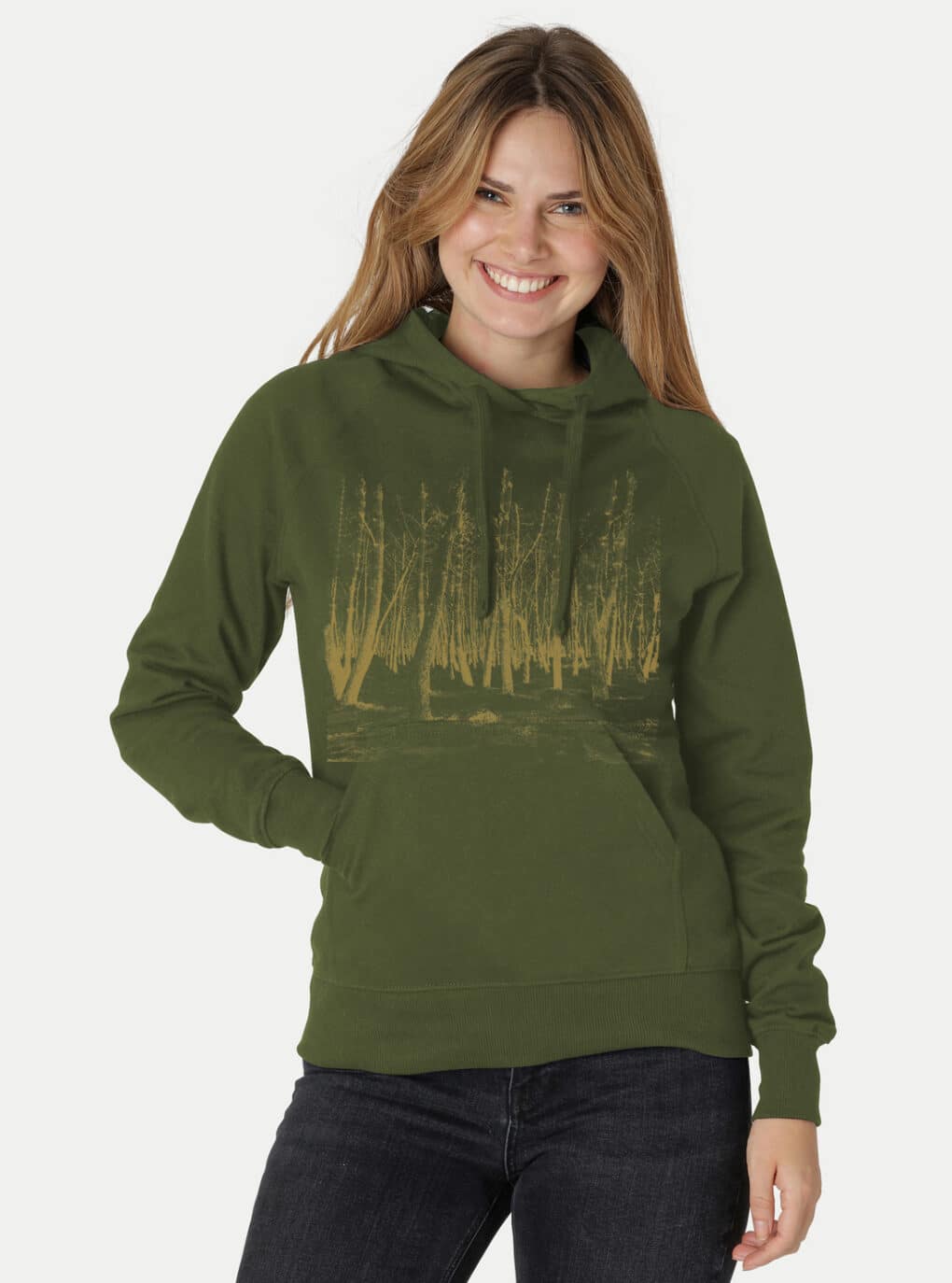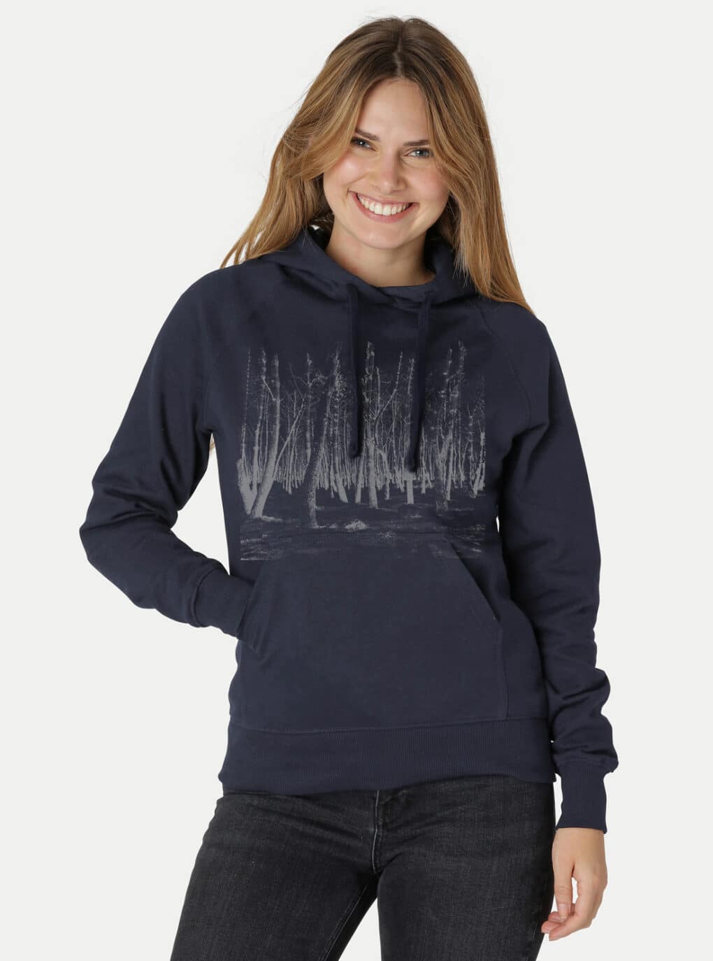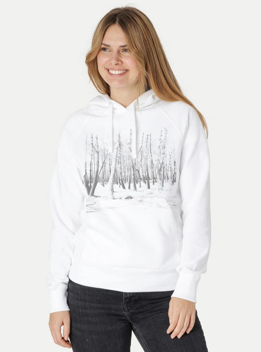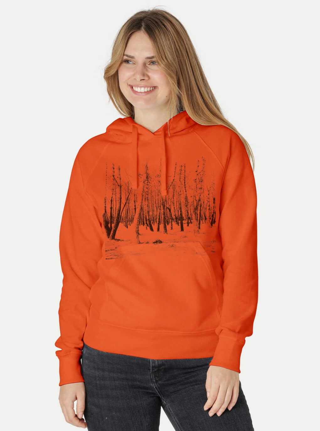 Der Bio Hoodie von Neutral® aus 100% Biobaumwolle ist qualitativ sehr hochwertig und kuschelig weich auf der Haut. Jeder Hoodie wird von Hand von Susanne Huber bedruckt, das Motiv „Woodland“ entstand aus einem Foto, das sie grafisch bearbeitet und auf den Siebrahmen belichtet hat.