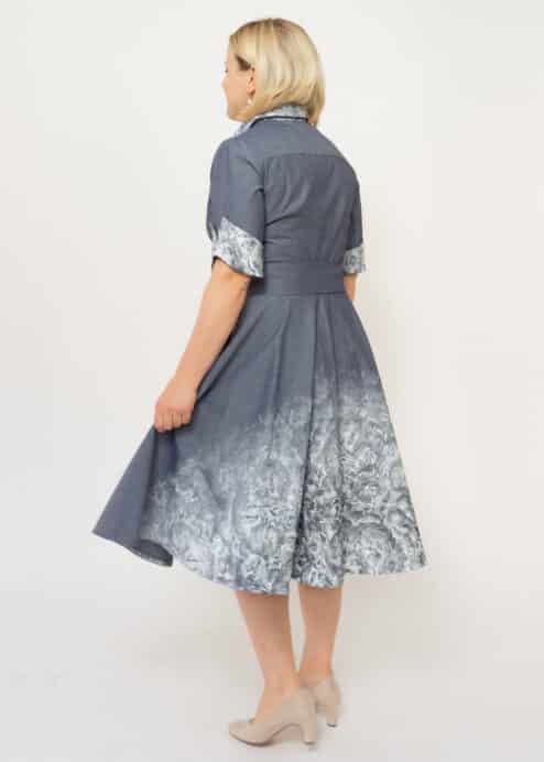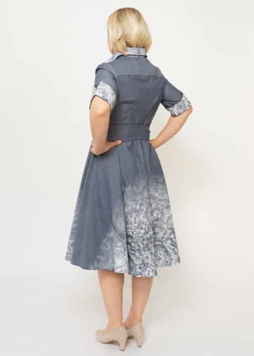 Hemdblusen Jeanskleid mit dem neuen Druck Rosengeheimnis