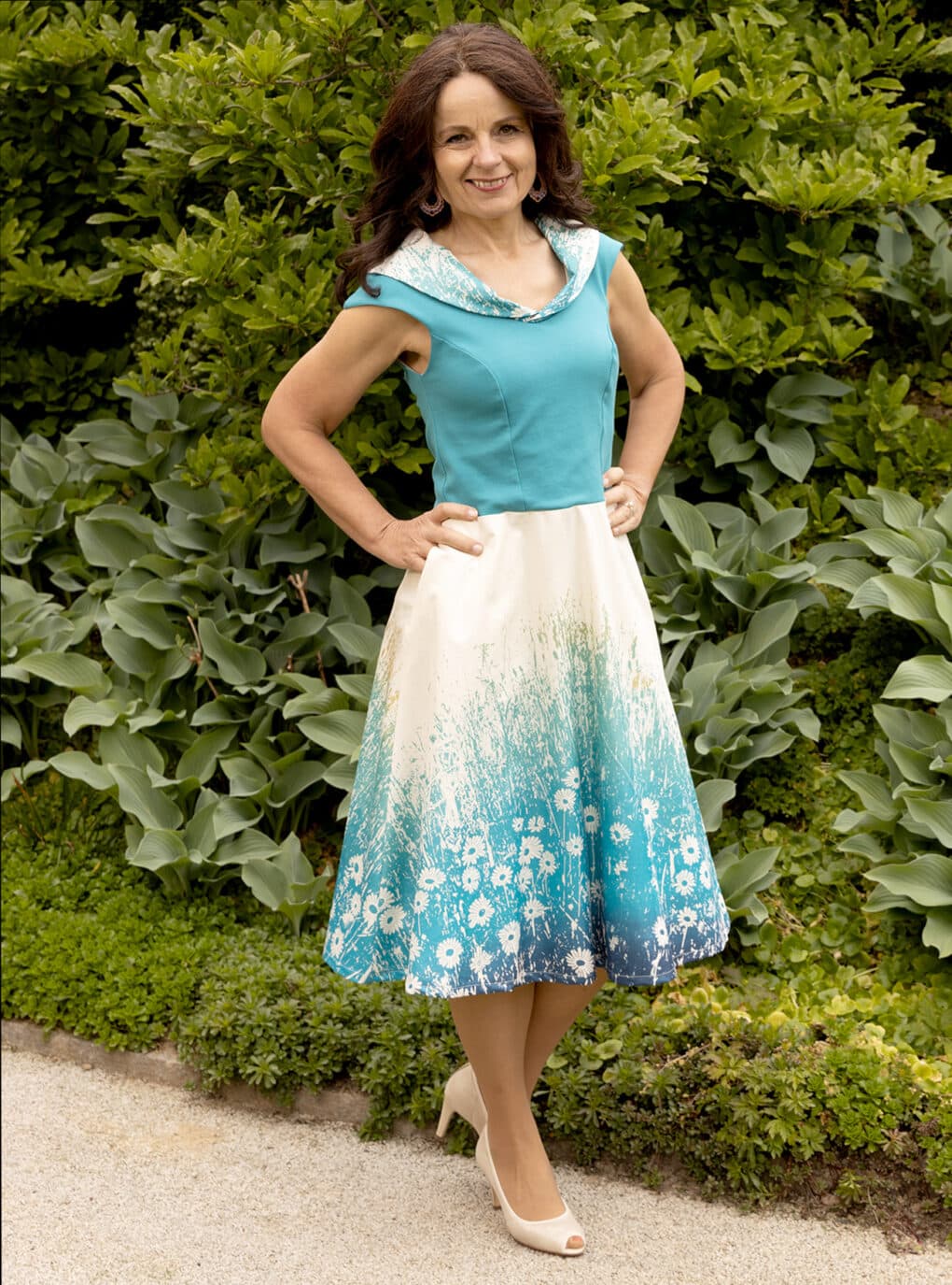 Dieses wunderschöne Kleid mit bedrucktem Schalkragen und schwingendem Rockteil besticht durch sein einzigartiges Design. Das Motiv „Margaritenzauber“ in lebendigem Farb-Verlauf kommt durch den stilvollen Schnitt des Naturkleides besonders schön zur Geltung. Der Oberteil ist in Türkis aus feiner Biobaumwolle mit Elasthan gefertigt, der Rockteil aus reinem Biobaumwollsatin.