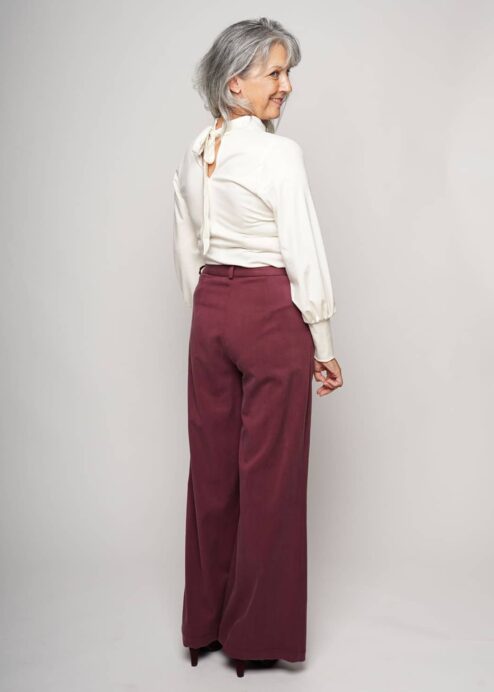 Die praktischen Gürtelschlaufen, zwei kleine Bundfalten am Vorderteil und Abnäher am Gesäß machen diese elegante Hose mit weitem Bein zu einer sehr beliebten Hose für Büro und Freizeit.