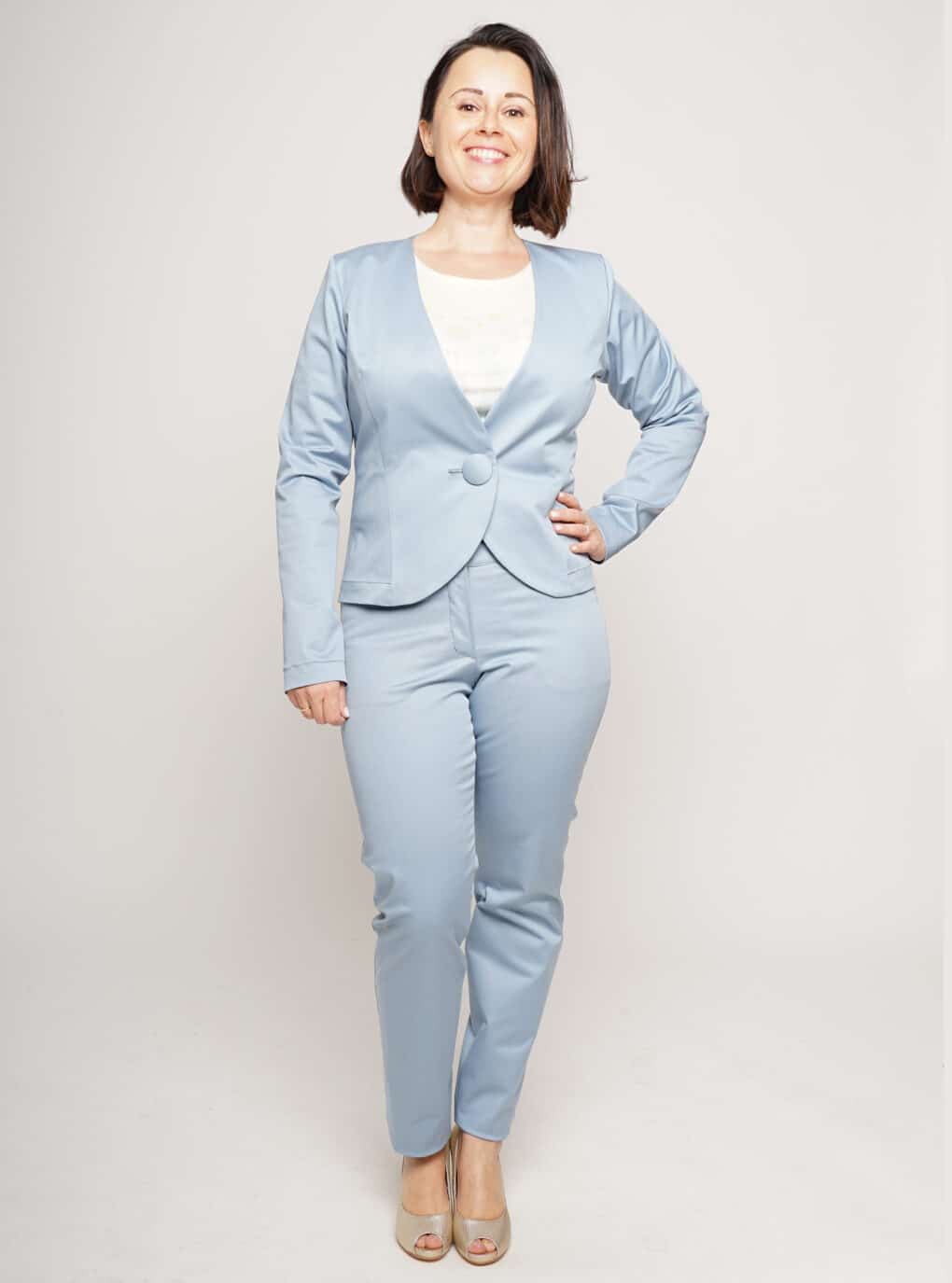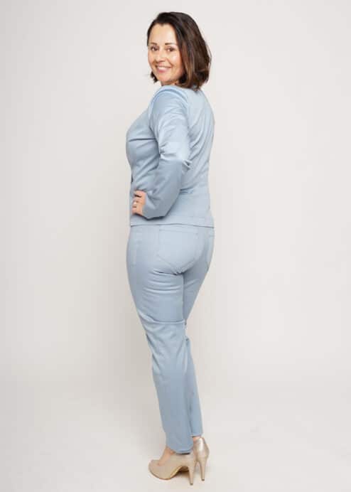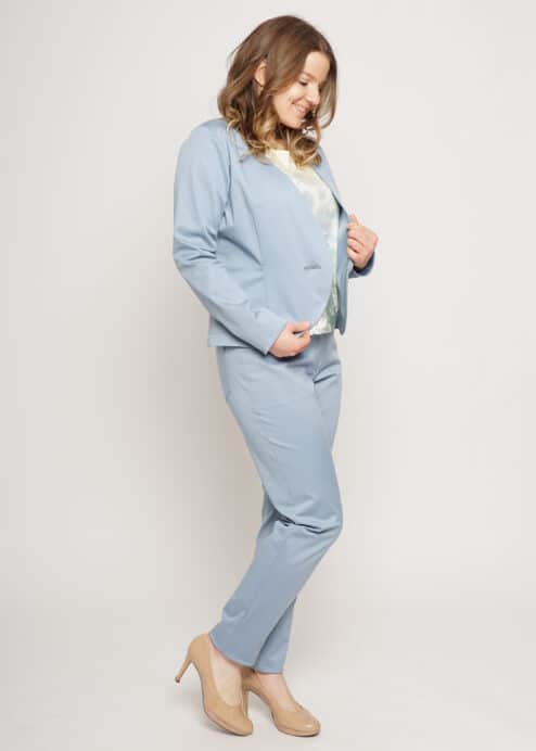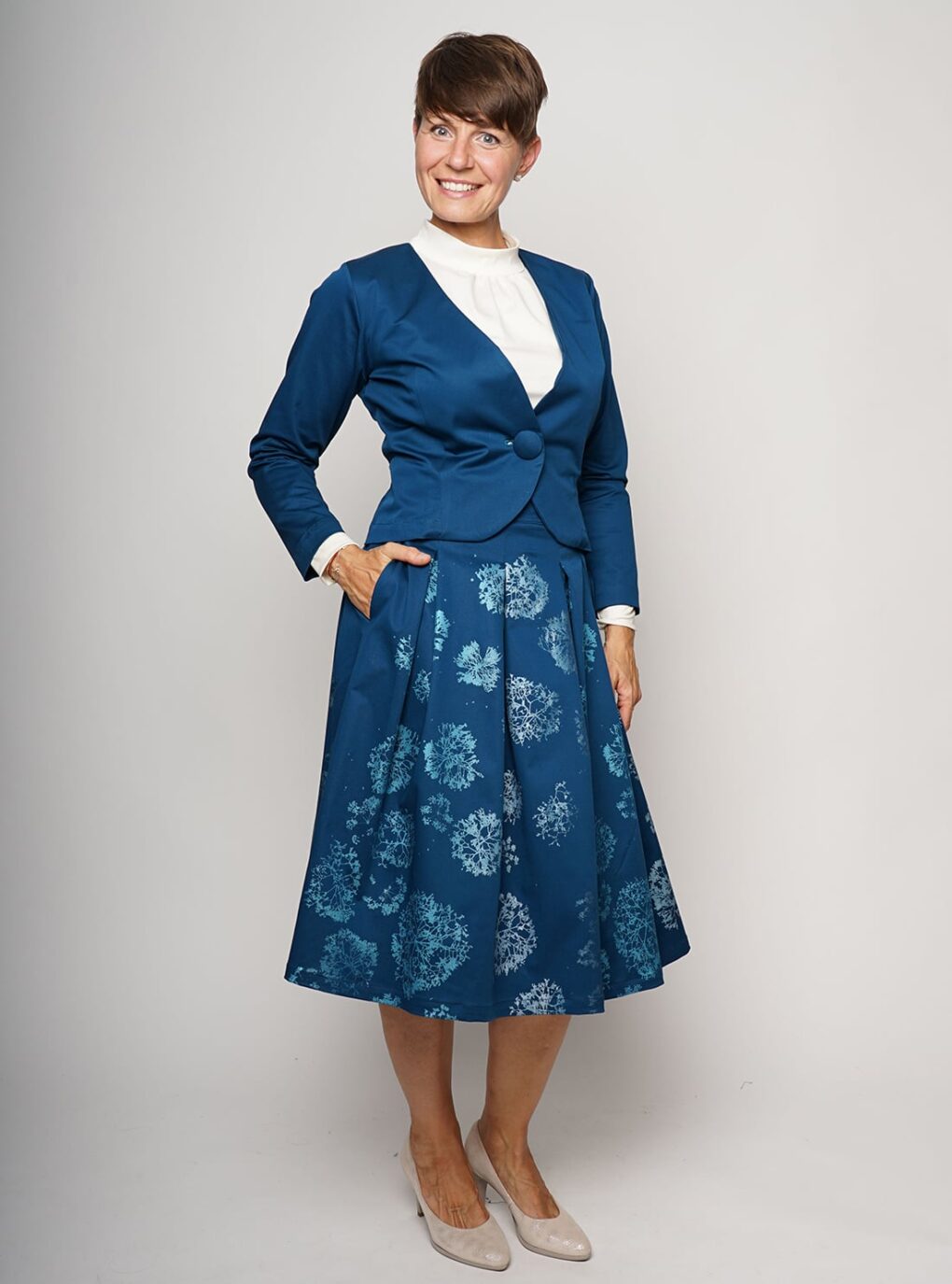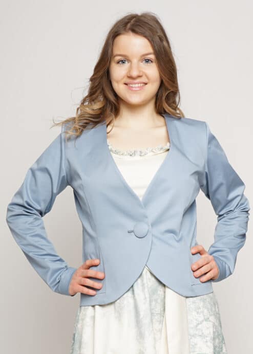 Ob zu den eleganten Festkleidern oder zu verschiedenen Röcken und Hosen – dieses zeitlos-elegante Blazer aus feinem Bio-Stretch Twill in vielen schönen Farben ist ein wahrer Verwandlungskünstler.