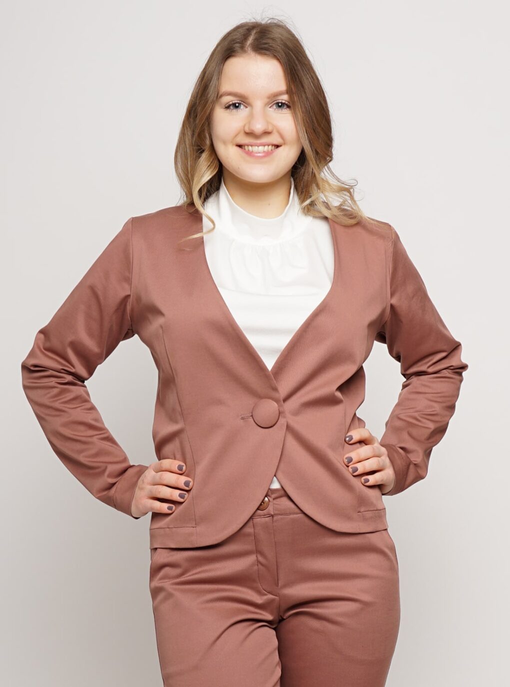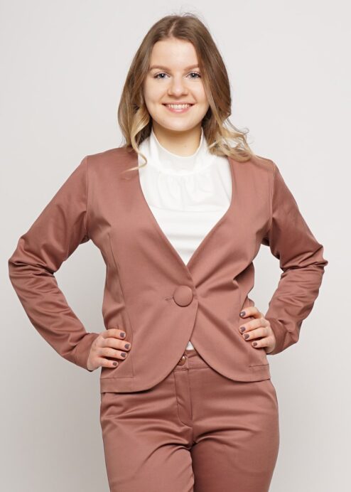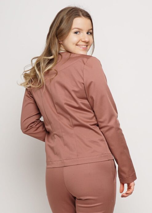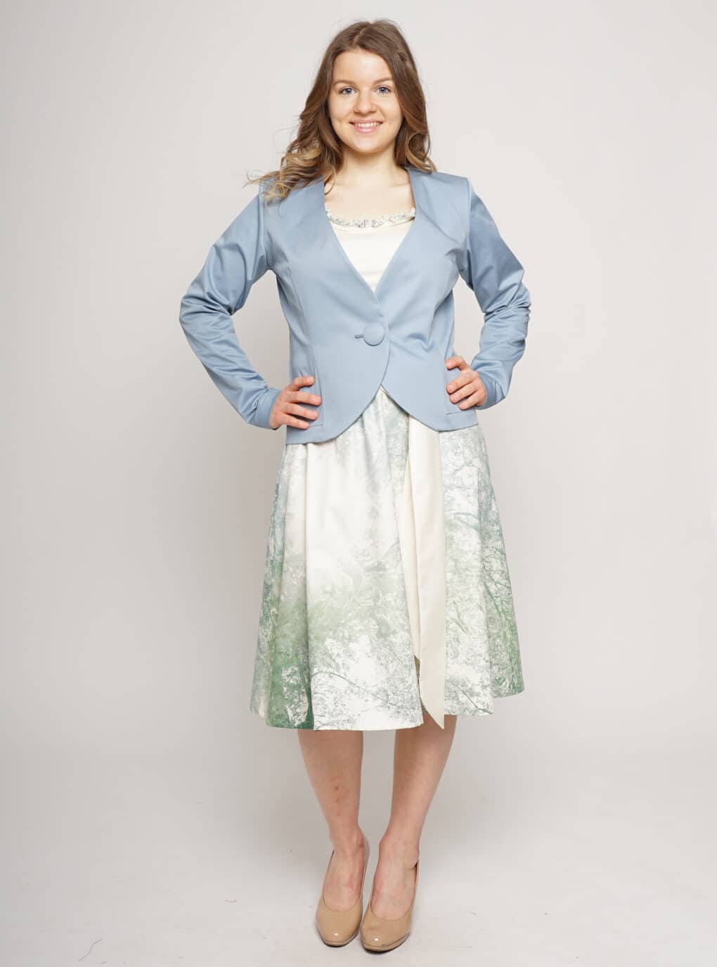 Ob zu den eleganten Festkleidern oder zu verschiedenen Röcken und Hosen – dieses zeitlos-elegante Blazer aus feinem Bio-Stretch Twill in vielen schönen Farben ist ein wahrer Verwandlungskünstler.